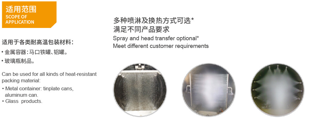 • 減少蒸汽消耗,蒸(zhēng)汽、霧(wù)化後的(de)殺菌水在殺菌釜(fǔ)內(nèi)直(zhí)接進行熱混(hún)合,提(tí)高升溫(wēn)降溫的速度。